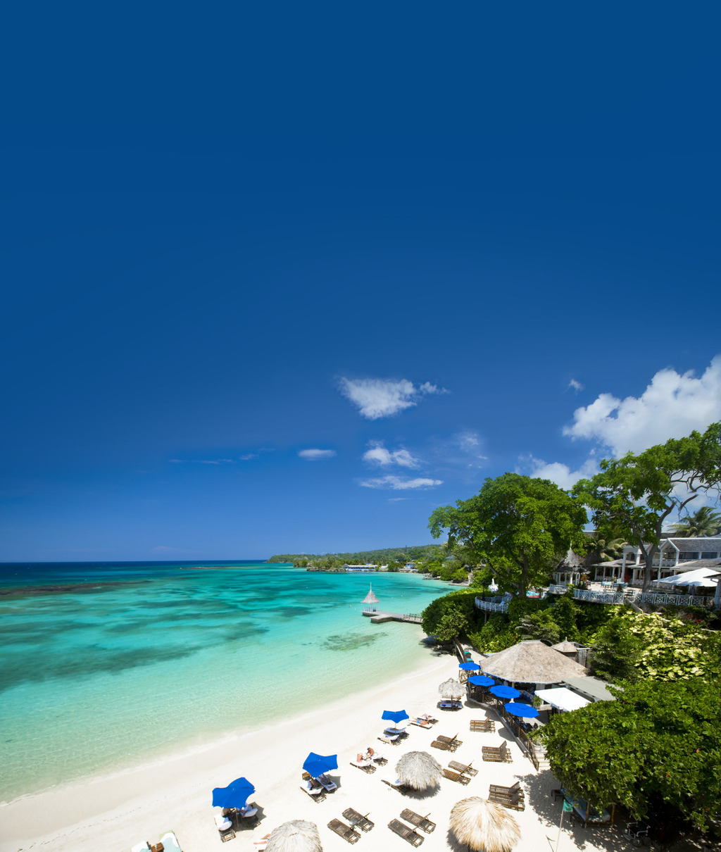 Built in the 1950s, during a time characterized by extraordinary old-world charm, this serene sanctuary still maintains a stellar reputation as one of Jamaica’s most exquisite resorts. Sandals Royal Plantation sits on a bluff rising 25 feet above the shimmering Caribbean, on 10 acres of beautifully maintained tropical garden. Two guest suite wings span the entire beachfront granting each and every one of its 74 sumptuous suites heart-stopping views of the ocean. Bask blissfully on our spectacular twin beaches-glorious golden-sand coves where you can spend countless hours soaking in the sunshine and sipping on “mangosas,” delivered ice-cold and sparkling to your hands by unobtrusive beach servers. This spacious all suite retreat boasts stately palms, towering Georgian architecture, and statuesque fountains. A fantasy world for discerning couples looking for the ultimate in seclusion from the rest of the world and everyone in it.