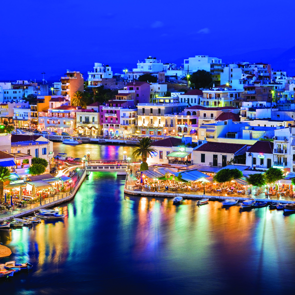 The port of Aghios Nikolaos is a picturesque village spread around Mirabello Bay. This charming small town has developed into a popular holiday resort thanks to its beautiful beaches and its convenience as a center from which to explore eastern Crete.