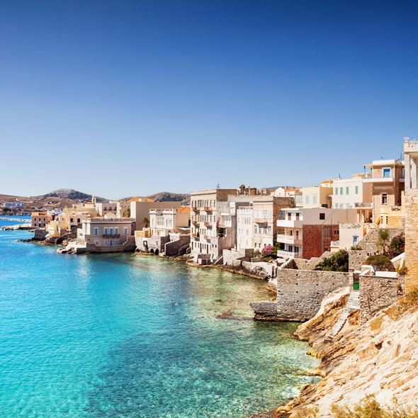 This hilly Aegean island, legendary birthplace of the goddess Hera, rests along a narrow strait across from the Turkish coast. Stroll through the streets of Old Town, lined with Turkish-style houses. Visit the Archaeological Museum, housing artifacts from the Heraioin, and be sure to view the lighted harbor at night. Also explore the 6th century AD Eupalina Tunnel, and enormous aqueduct built through the mountains to supply the city with water.