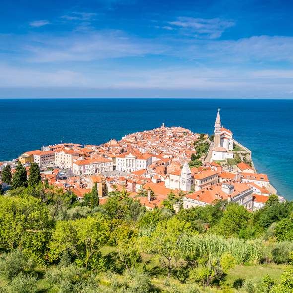 Piran is an old Mediterranean town situated at the tip of the Piran peninsula along the Gulf of Piran. The town resembles a large open-air museum, with medieval architecture and a rich cultural heritage. Narrow streets and compact houses give the town its special charm. Piran is the administrative centre of the local area and one of Slovenia's major tourist attractions.